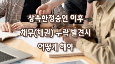 ÇÑÁ¤½ÂÀνà ½Ç¼ö·Î ´©¶ôÇÑ Ã¤±ÇÀÌ Àְųª ÃßÈÄ Àû±ØÀç»êÀÌ ¹ß°áµÉ °æ¿ì ¹Ýµå½Ã ÇÑÁ¤½ÂÀΰæÁ¤½ÅûÀ» ÅëÇÏ¿© »ó¼ÓÀç»ê¸ñ·Ï¿¡ Ãß°¡ ÇÏ¼Å¾ß ÇÕ´Ï´Ù.