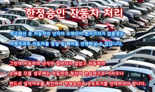 »ó¼ÓÇÑÁ¤½ÂÀνà °íÀÎÀÇ Àû±ØÀç»ê Áß ÀÚµ¿Â÷³ª, ÁßÀåºñ, ¿ÀÅä¹ÙÀÌ, ¼±¹Ú °°Àº Á¾·ùÀÇ Àç»êÀÌ ÀÖ´Â °æ¿ì ÁÖÀÇ ÇÏ¼Å¾ß ÇÕ´Ï´Ù.